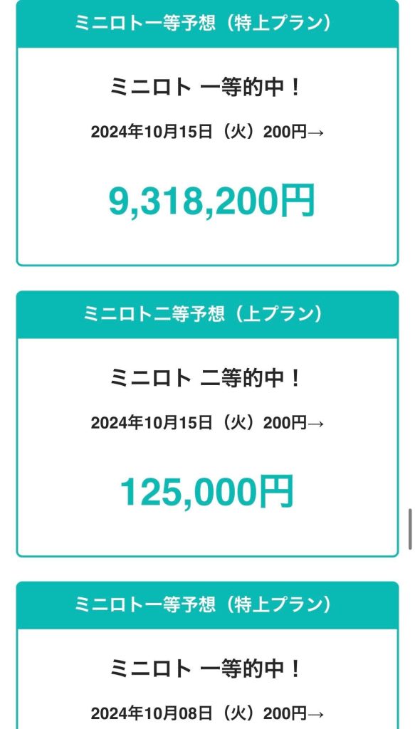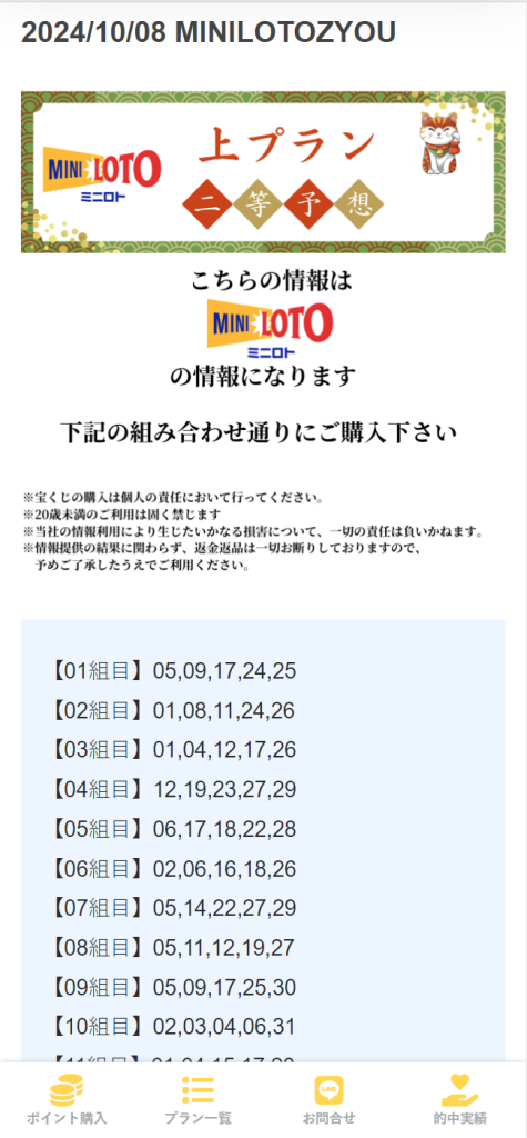 2024年10月8日(火) 参加プラン ミニロト2等