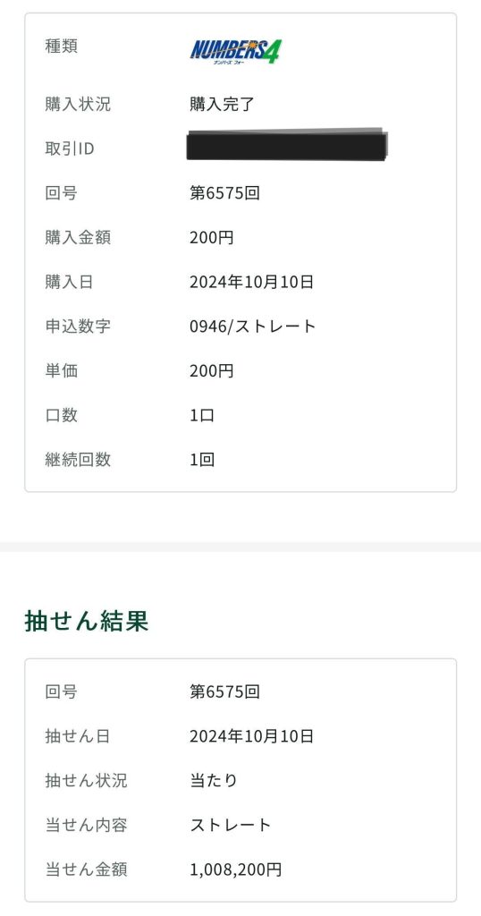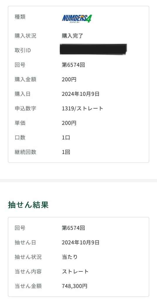 ナンバーズ4ストレート、見事当選!!