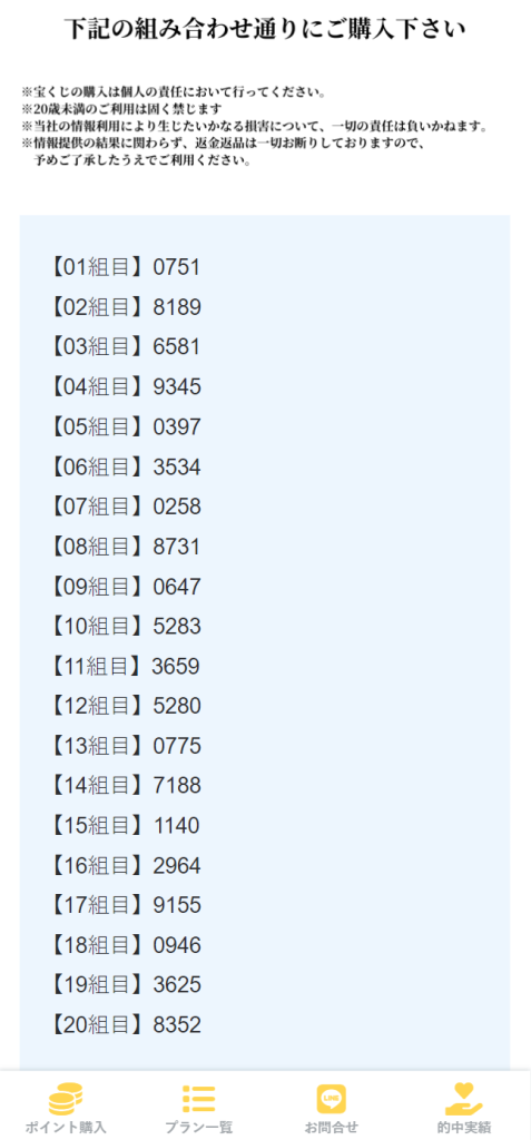 こういう宝くじ予想を使ったことない人向けの説明とかもあって中々好印象だな!